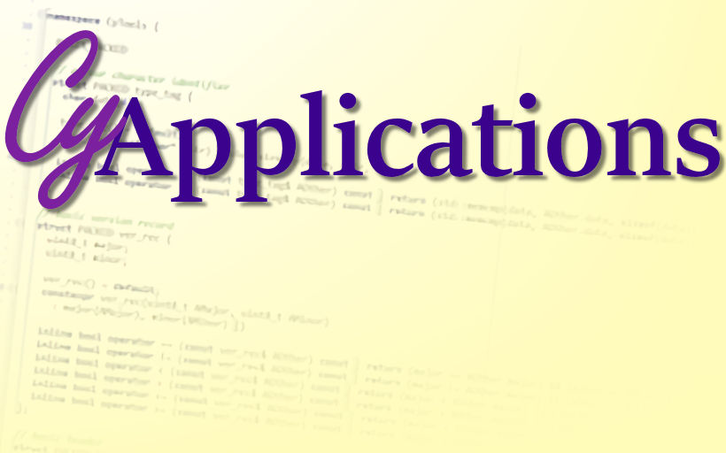 Welcome to CyApplications.uk, my internet presentation, my digital personality. Here you will find software I have created and code I have written. CyApplications.uk also hosts a few websites; this helps with the running costs of the server, and helps a few by providing cheap and easy internet services. There is also a more personal section. Please look around and if you have any questions or suggestions, feel free to contact me.